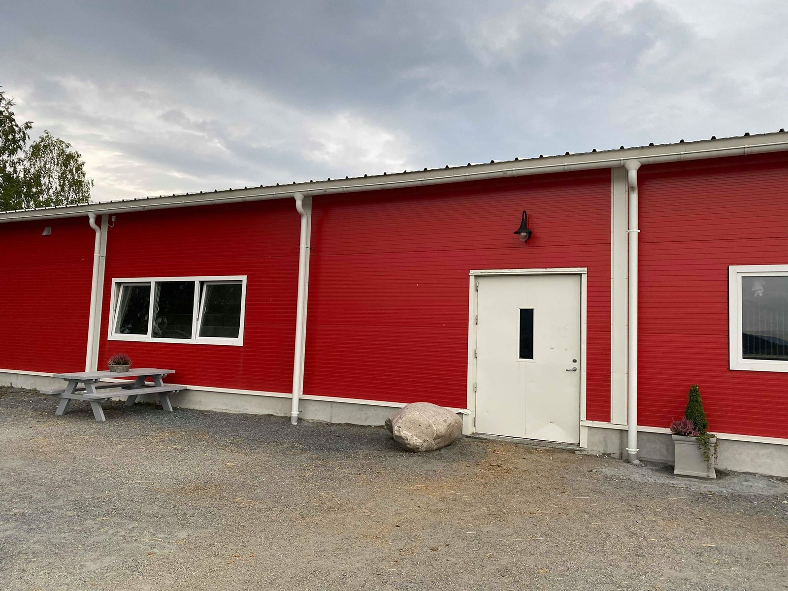 25×50 meter og stallbokser til 10 hester med inngang til ridehuset fra stallen.